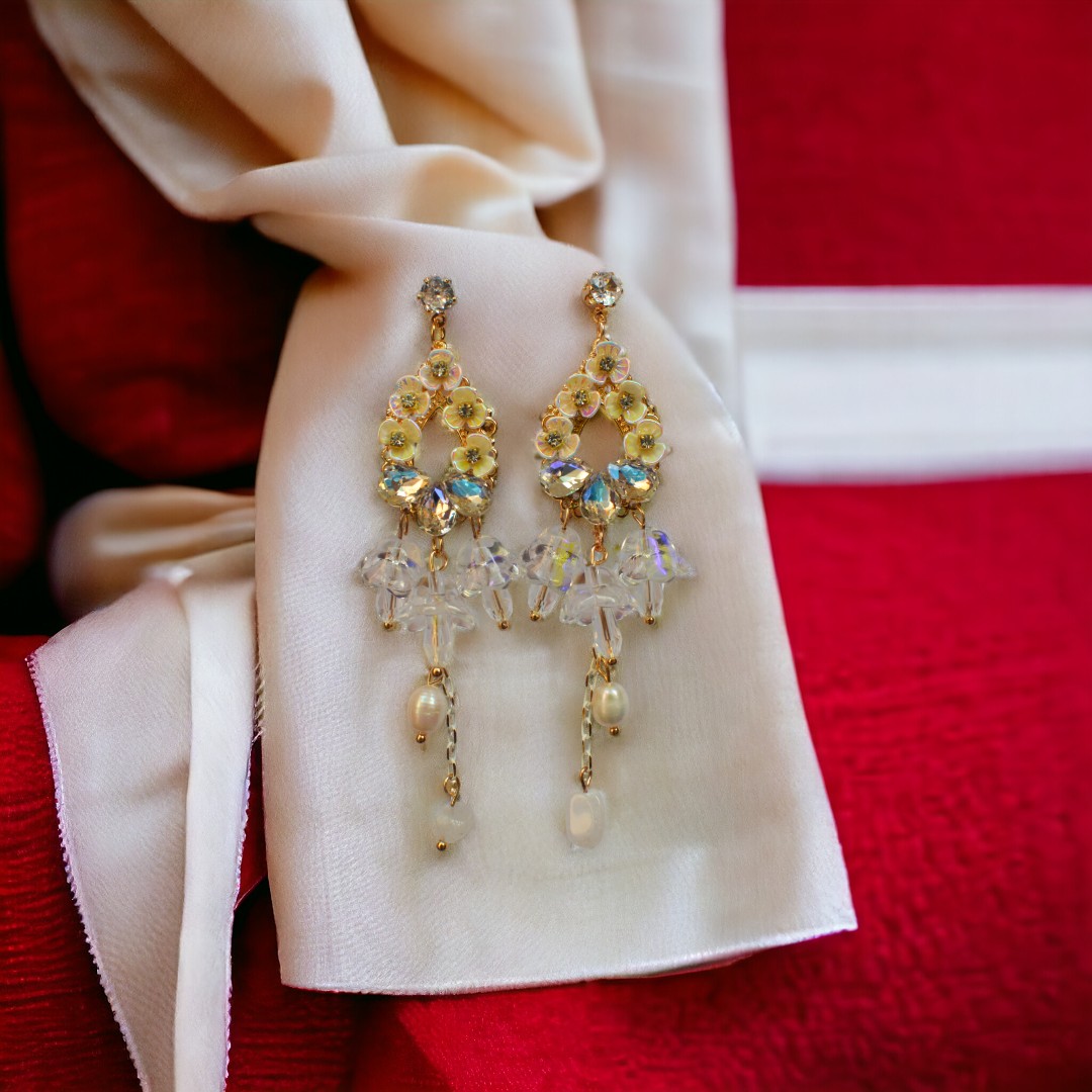 Off White Color Dangler Earrings with Silver Stones & Flower Detailing